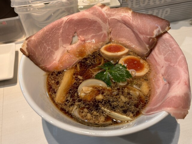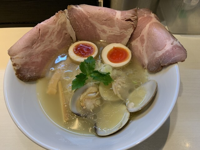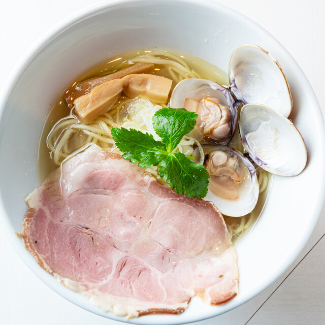 ハマグリベースの出汁に、厳選された沖縄の塩やアサリを独自の配合でブレンドした[絶品贔だしラーメン]は当店自慢の1杯◎
