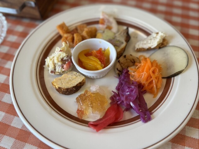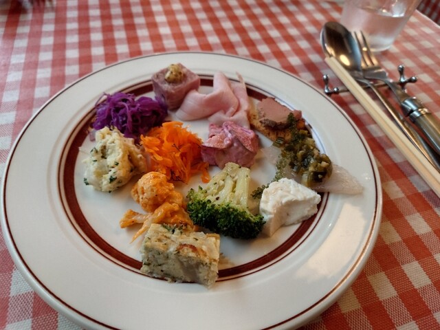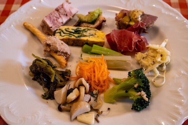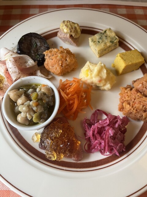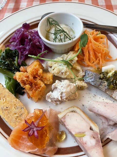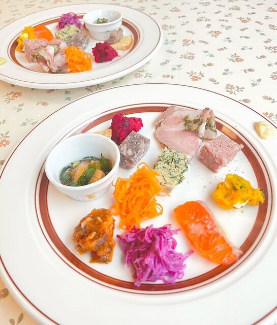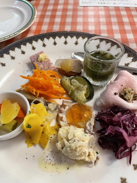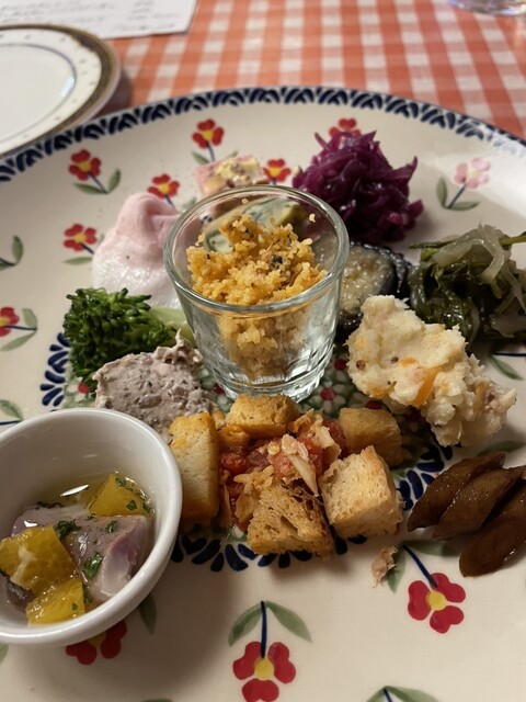 前菜は少しずついろいろな種類のものがのっていて、全部美味しく見た目も華やか。