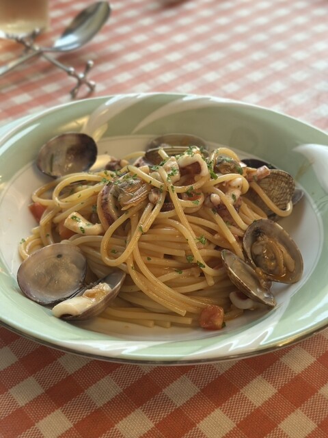 パスタは、オイルの方はイカとアサリがたっぷりで