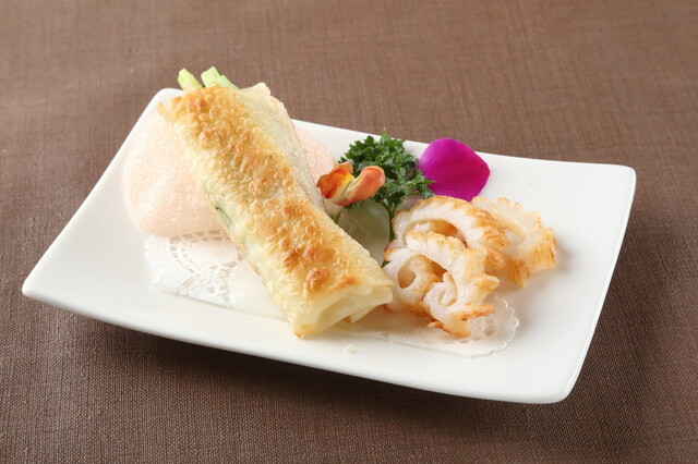 名物 イカの天ぷらと北京ダックのクレープ包... (by お店)