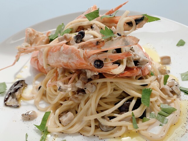 エビとキノコのクリームソース (by お店)