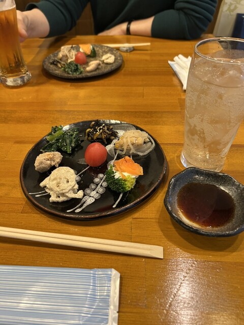 大将さん、日本酒あまり呑まれないそうですが、丹山酒造さん取り扱いあったり、なかなか良いラインナップ。 付きだしがお洒落な一口盛り合わせなのは女子受けいいかも。 鯖のへし... 詳細を見る