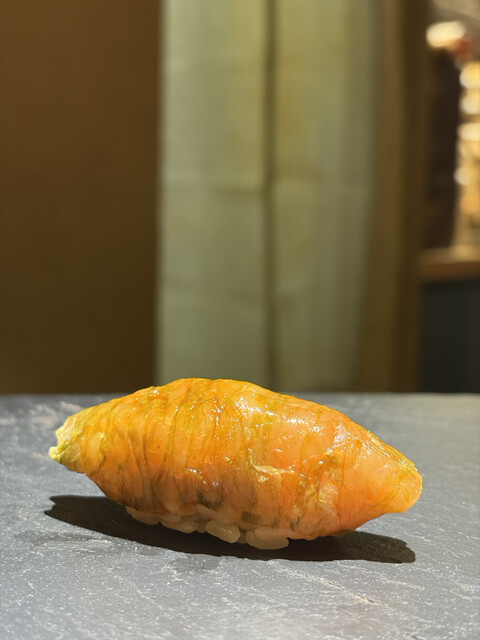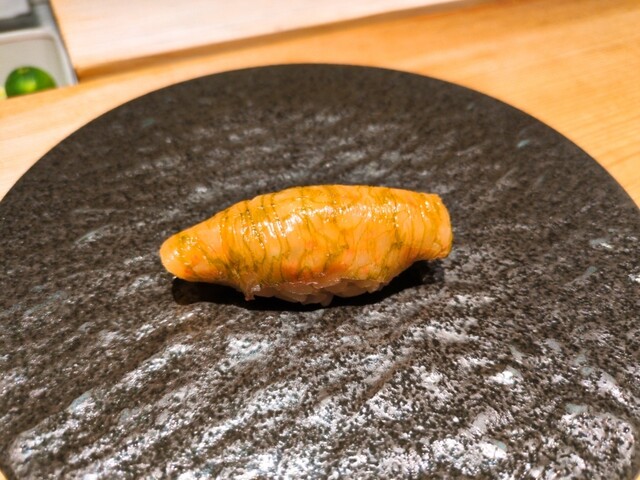 甘エビの握りは、ねっとりとした食感と