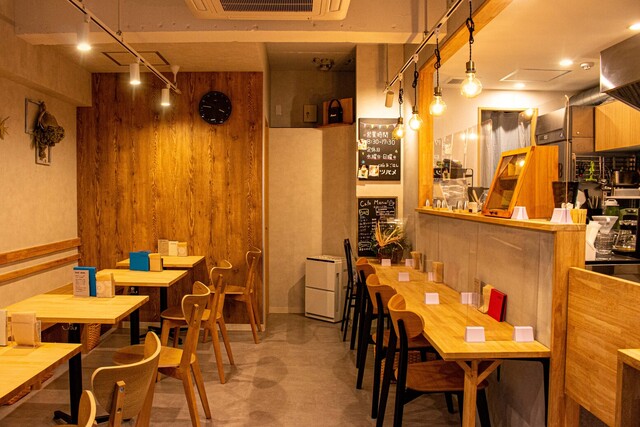 向かい側の高齢者施設に母が入所しているので、面会の帰りに娘と伺いました。こじんまりとしていて、昭和感のあるカフェ。クリームあんみつや、冷たい抹茶ラテ等注文。あんみつはメニューの写真より、若干量が少なめ(ファミレスのミニよりちょい大きめ)かな。と感じました。が寒天が手作り感あり、美味しかったです。ラテは抹茶よりミルク感が強い感じ。年配の(←失礼)お二人でされておられました。雰囲気は木のぬくもりもあり...