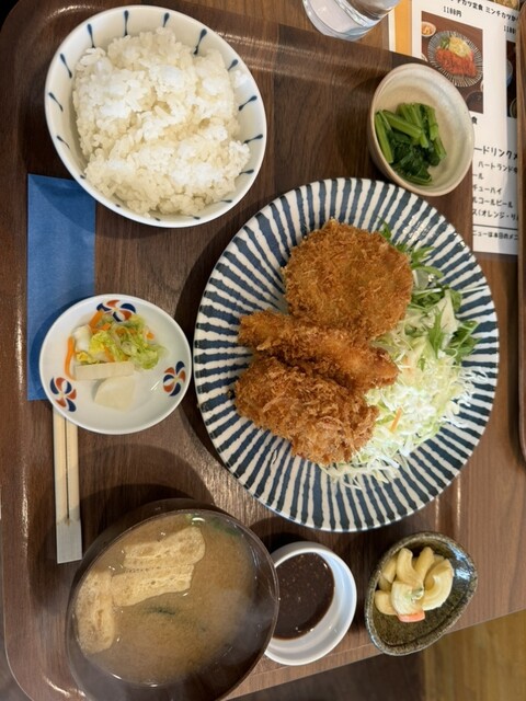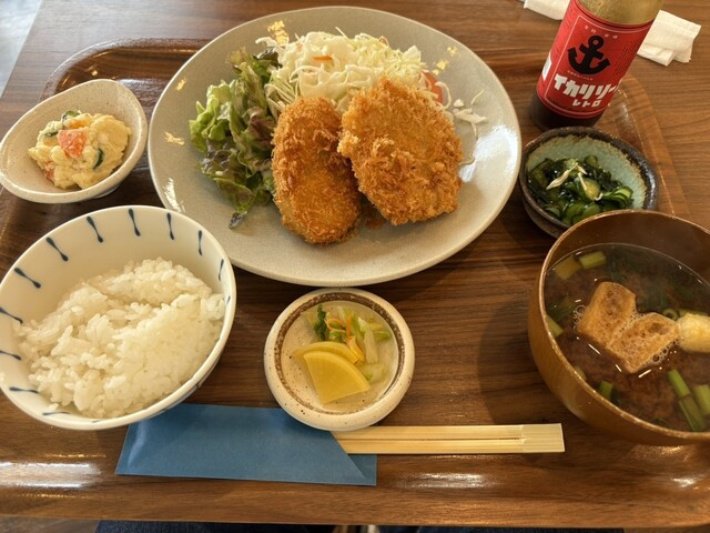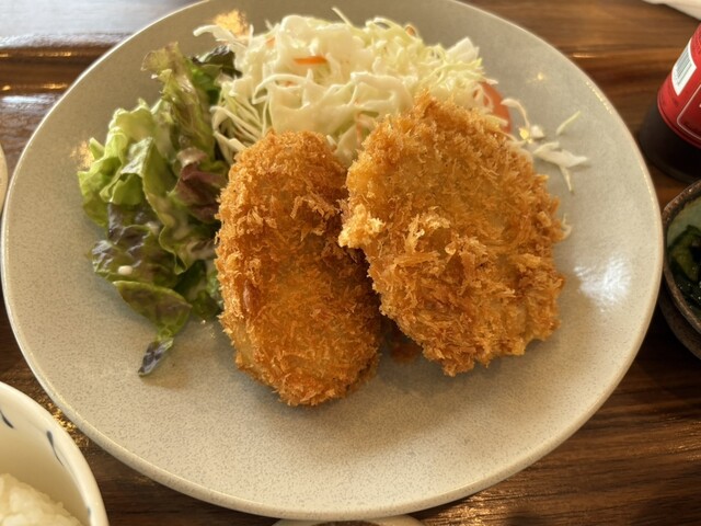 平日ランチに伺いました コロッケ➕ミンチカツ定食を注文 暫くして着皿 コロッケとミンチカツ各1個がたっぷりの野菜と共にお皿に盛り付けられていました きゅうりとワカメの酢の物... 詳細を見る