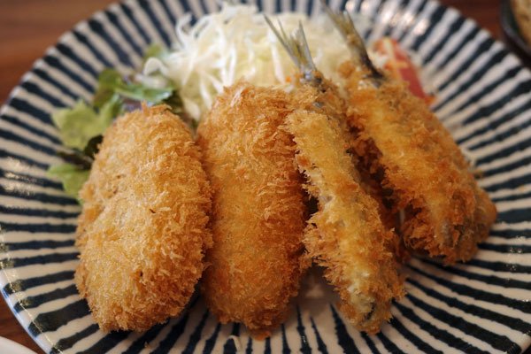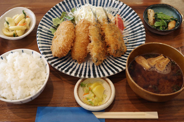 この日の数量限定メニューのコロッケ&いわしフライ定食をいただきました。