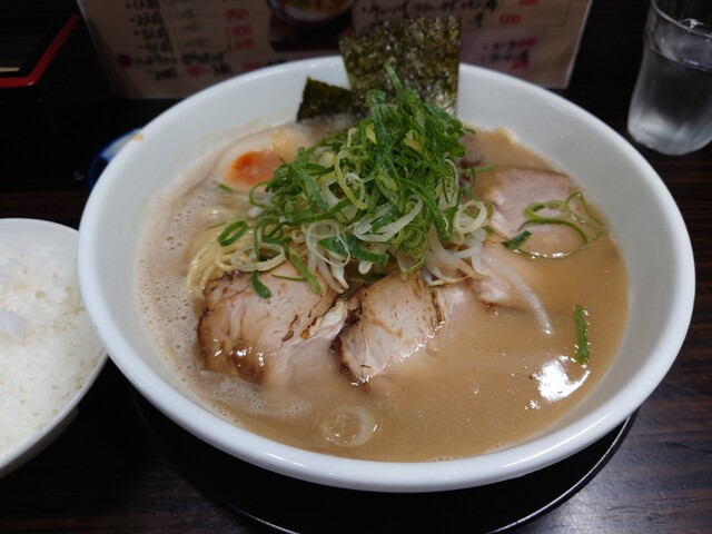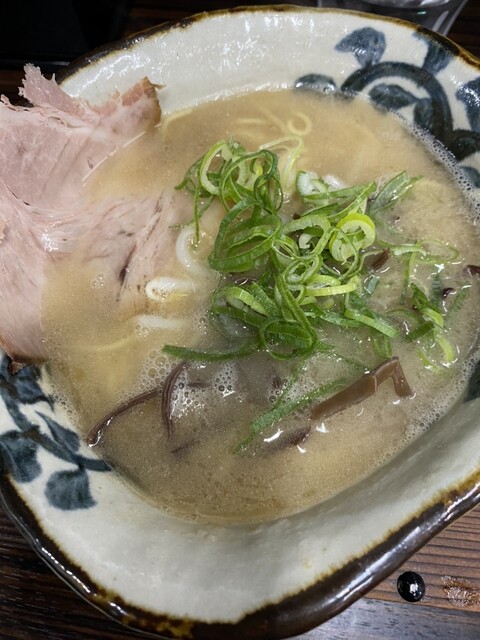 やや黄味がかった白濁したスープの中にストレートの細麺が覗き見え、その上にチャーシュー・木耳・刻み青葱といったト...