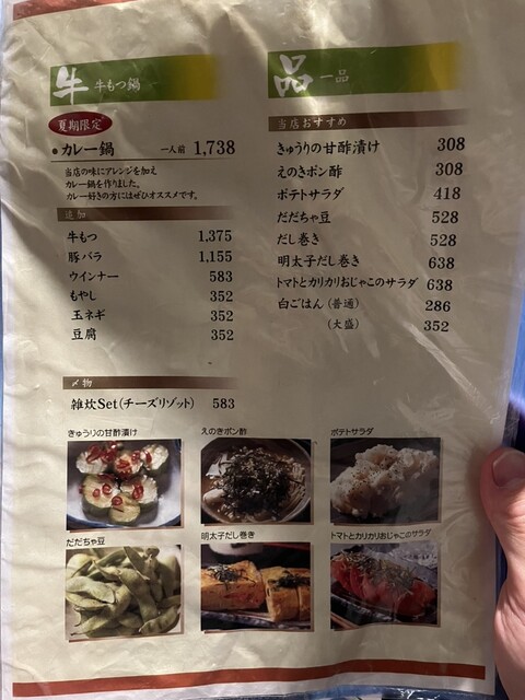 阪急西宮北口駅からほど近く、仕事帰りや食事会でも使いやすい立地です。業態はもつ鍋を中心とした居酒屋で、店内は落ち着いた和の雰囲気。席平日の夜でもお客さんが多く、予約しておくと安心だと感じます。女将さんお1人で営業されていました!