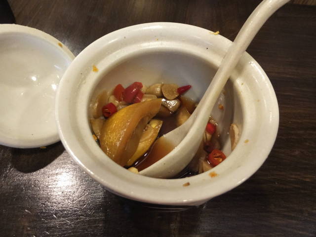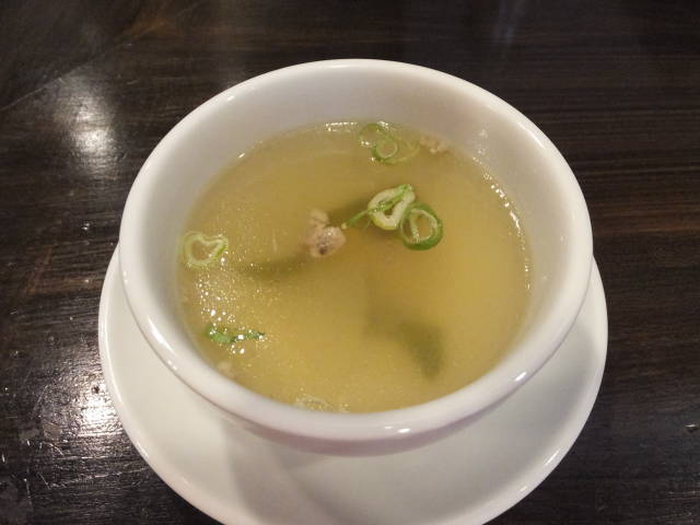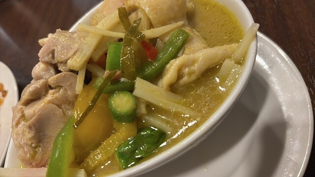 まずはスープ。タイのスープといえば辛いトムヤムクンなどが有名ですが、こちらは優しい味わいのチキンスー...