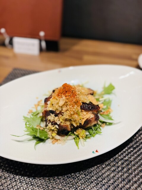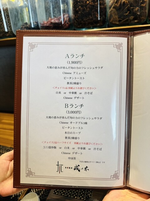 私は、Aランチ(成の木特製油林鶏)ご飯1900円+蒸し鶏葱ソース1300円を嫁ちゃんは、Aランチ(四川麻婆豆腐)汁そば1900円を注文。