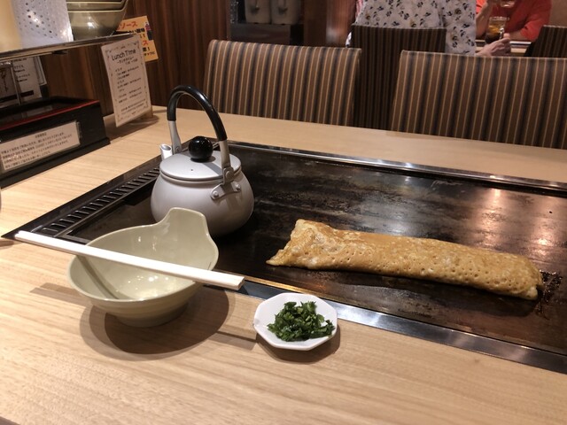 まずは名物の「鉄板明石焼」を注文。熱々の鉄板の上に棒状に巻かれた明石焼きと出汁が出て来ます。 コテで切り分けて出汁に漬け、スプーンで口に。玉子たっぷりのフワフワの生地の中に弾... 詳細を見る
