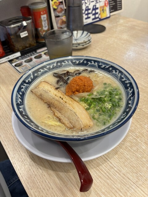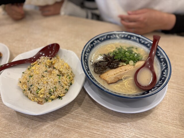 名物の「レッド明太豚骨ラーメン」と「ミニにんにくチャーハン」のセットを注文しました。 まずは「にんにくチャーハン」から。強火でパラッと仕上がっている本格的なチャーハンで、たっ... 詳細を見る