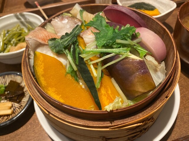 【せいろ蒸しの晩ごはんSET】茶美豚バラ肉・みつせ鶏・赤魚からセレクト◎その日の良い素材を使用した身体に優しいせいろ蒸しをお気軽に♪
