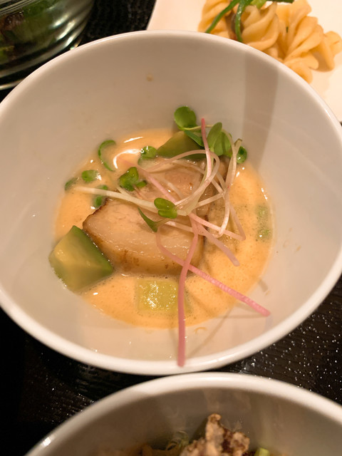 何が出てくるか、何品出てくるか分からない、 おまかせコースを予約して行きました。 まずは前菜の鴨とエビ。 鴨は塩味が効いてて、飲む方には良いかも。 2品目 生ハムの... 詳細を見る