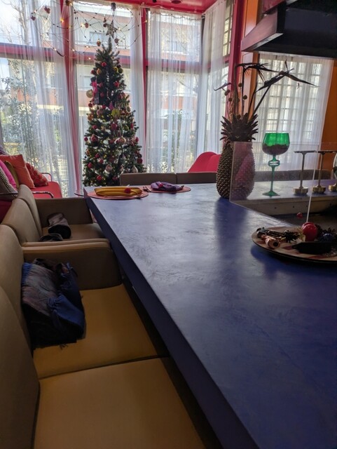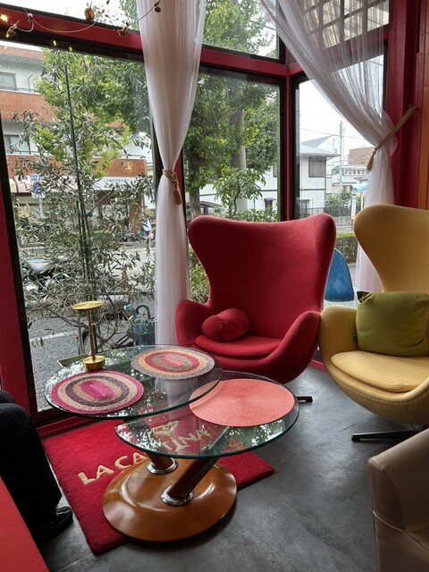 芦屋市の中でも阪神打出の住宅街にある隠れ家的レストラン。中はカラフルな内装のおしゃれな雰囲気です。