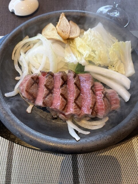神戸牛をはじめとした厳選の国産黒毛和牛のステーキと、新鮮野菜をふんだんに使用したヘルシーなコース料理をお箸で召し上がっていただきます。コース料理のメインとなる滋味溢れる国産黒毛和牛の厚切りステーキは熱く焼かれた南部鉄の鉄皿でお好みの状態でお召上がりいただけます。自慢のポンズたれはステーキ肉を実にあっさりと仕上げ、兵庫県産焚き立てごはんと好相性です。広々とした格調高い店内は、店内の調度品のセンスの良...さと加え「大人」が落ち着いて寛げるものとなっております。優しい音色を奏でるグランドピアノの生演奏を楽しみながら、大切な方とかけがえのないひとときをお過ごし下さい。
