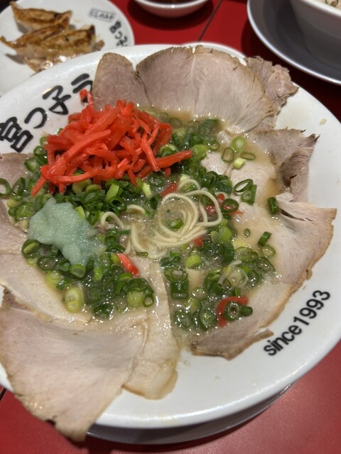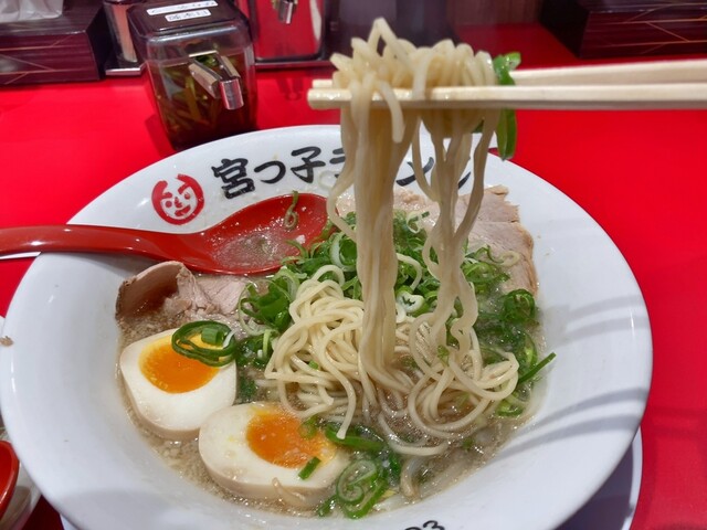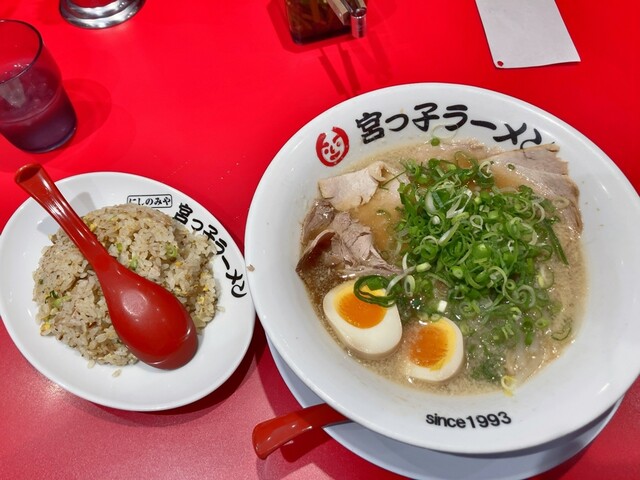 「宮っ子ラーメン」は、阪急宝塚線の山本駅南口車で7分。できたてのラーメンをすぐに提供してもらえるシステムです。 スープは濃すぎないものの充分なパンチと香ばしさを持つ豚骨醤油がベース。どちらかと言うとあっさり寄りで、たくさん食べてももたれません。スタンダードな宮っ子ラーメンは、スタンダードなのにチャーシューもネギも山盛り、もやしもたっぷりで食べ応え充分です。チャーシューメンともなると、麺もスープも見...えなくなるほどのボリューム。チャーシューは身が多めのものを薄切りにしてあり、味もほどよくいくらでも食べられます。その他夏季限定の冷麺、冬季限定の白菜ラーメンもあります。 サイドメニューのチャーハンや餃子もラーメンと一緒にいただくとまた格別です。チャーハンの香ばしさも餃子のカリカリ・しっとり感もぜひ味わっておきたい逸品です。