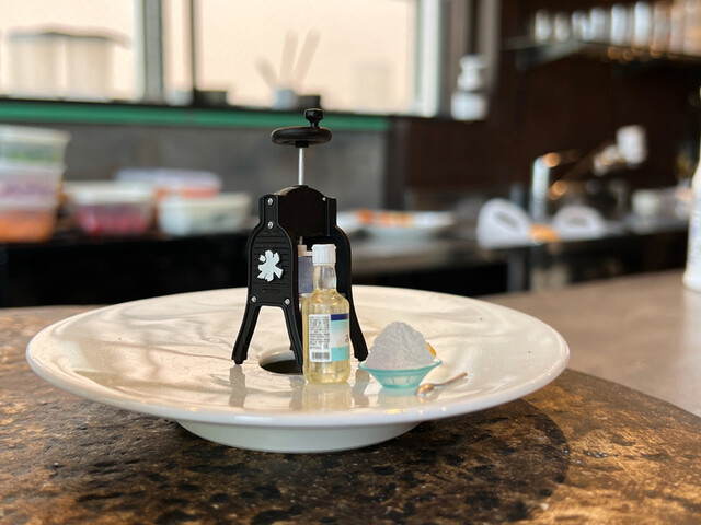 アンベルジェモンクゥさん、2023クリスマス限定のかき氷。 今年も「双子のNoel」とのこと。Noir(黒)とBlanc(白)で双子のかき氷です。 「Noel Blanc」 クリームチーズとマカデミアナッツのクリーム、いちごミルクソース、 紅茶プリン、フレッシュいちご、いちごムラング... 詳細を見る