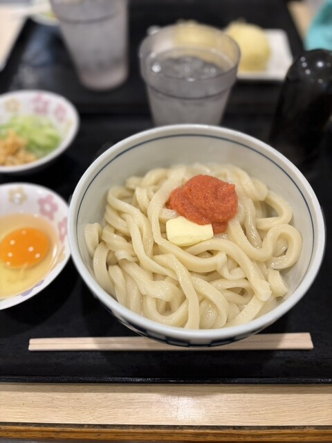 熱々の麺にバターと明太子と卵!最高の組み合わせ