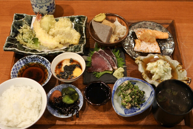 お造り、焼き物、煮物、揚げもの、釜飯など御座います、旬のお鍋、てっちり、クエ鍋、鯨ハリハリ鍋、鱧しゃぶなど、その他のお料理もたくさんご用意しております。ランチタイムは、お昼定食、特上鰻丼定食がございます。テイクアウトでは鰻重、海鮮丼、特上天丼、フカヒレ丼など、お友達と会食、法事、お祝い事などにも御利用いただけます。お気軽にご相談ください。
