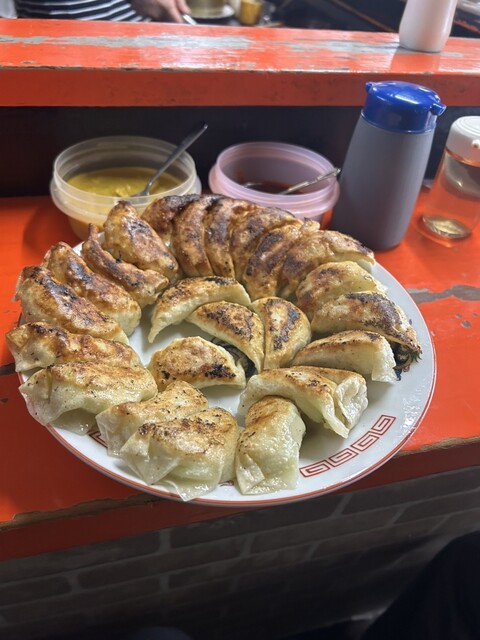 10時20分に訪問して、3番の番号(11時〜)をもらい一旦お店を離れました。11時に再度訪問しました。2人で餃子5人前と、焼飯、焼きそば、持ち帰りの餃子を注文。餃子は肉肉しいタイプではなく、野菜たっぷ...