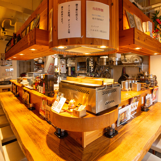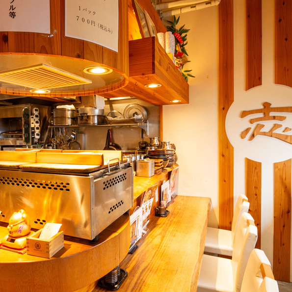 席は10名様までOKのL字カウンターとテーブルをご用意。