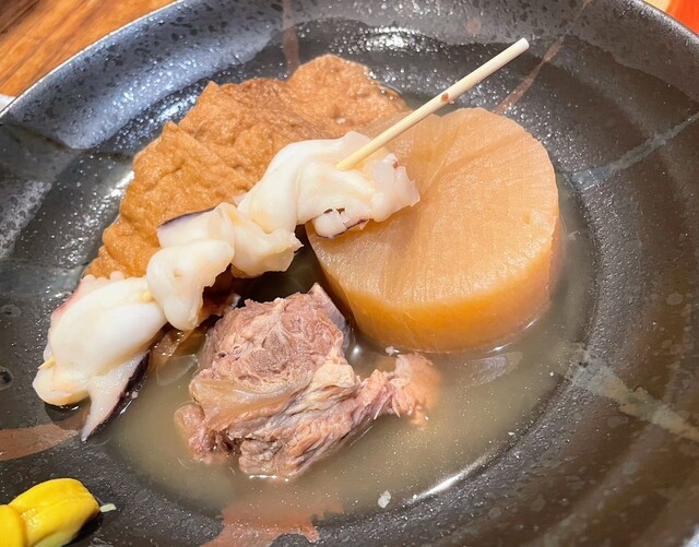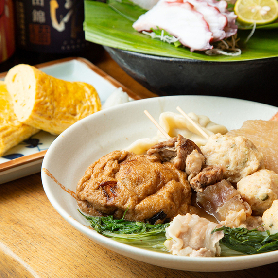 名物の大きな鍋で煮込んだおでんは、一年中いつでも食べられます。