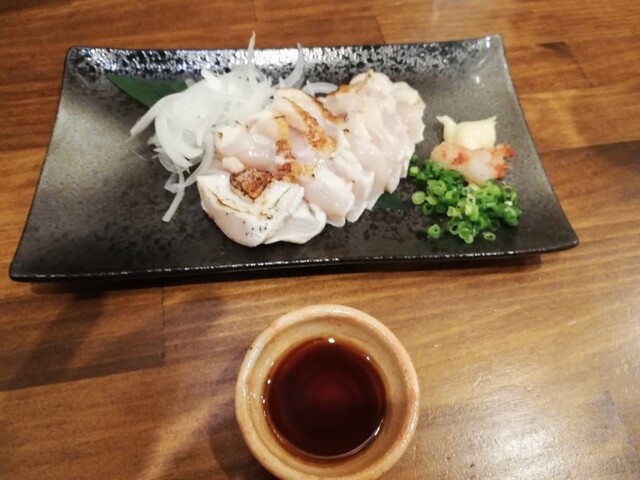 待ちの間に鳥刺しもいただきました。塩ごま油の塩とごま油の比率はもう少し考えて欲しいと...
