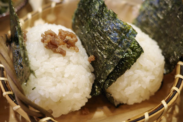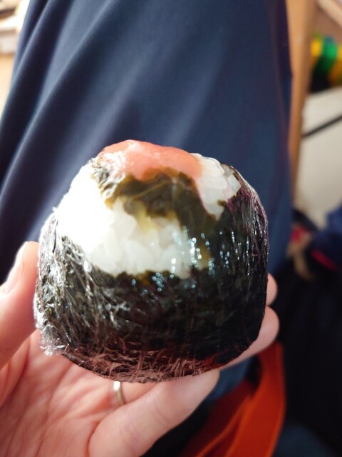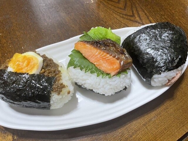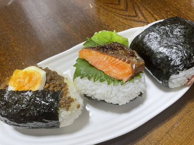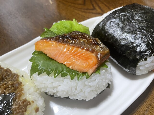 塩おにぎりは1つ+100円+税で好きなおにぎりに変更できるといいうことで、1つを肉そぼろに変更していただきました。