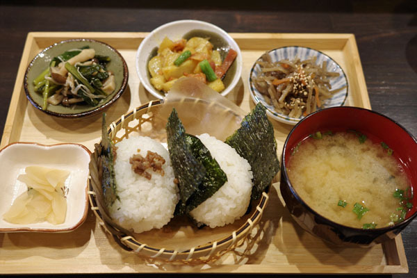 お昼は単品のおにぎりの他に、おにぎり定食があります。