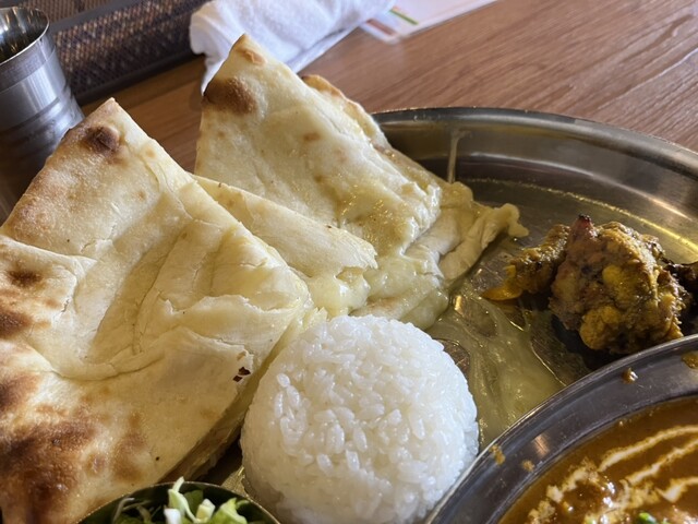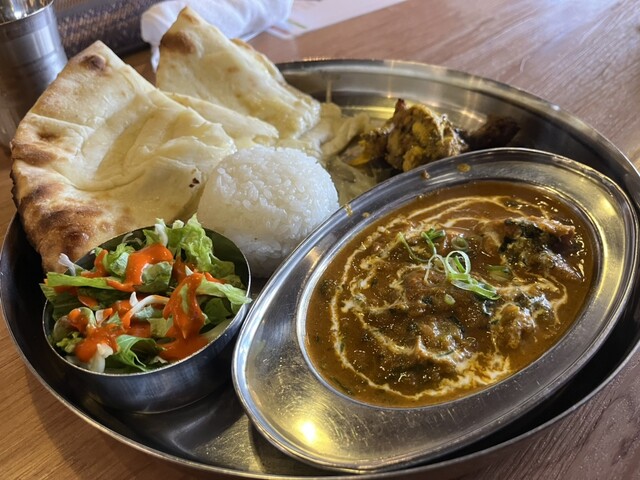 平日のお昼に訪問。 11時15分、入店。1番乗り。 Cセット(990円)を注文。 カレー2種はチキンカレーと豆カレーを選択。 辛さを選択でき、辛口を選択。 私のみだっ... 詳細を見る