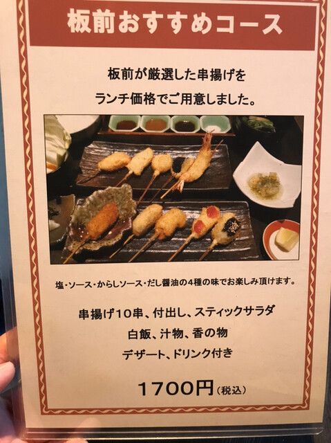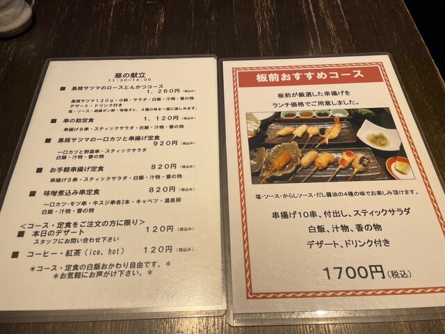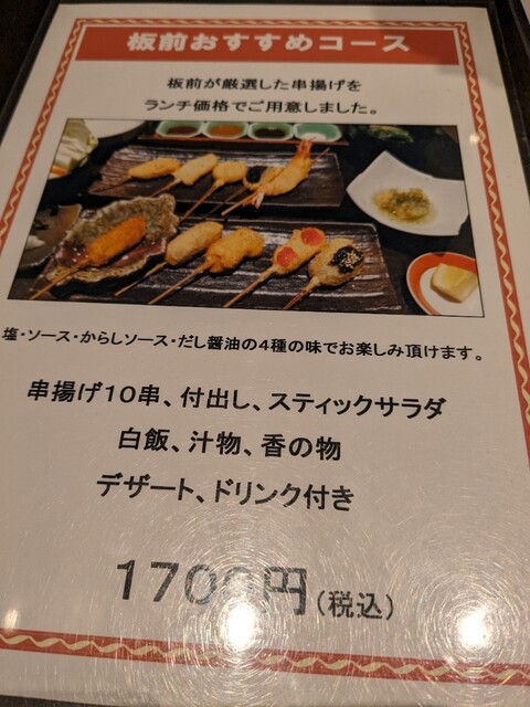 板前串揚げコースというリーズナブルな価格でいただける