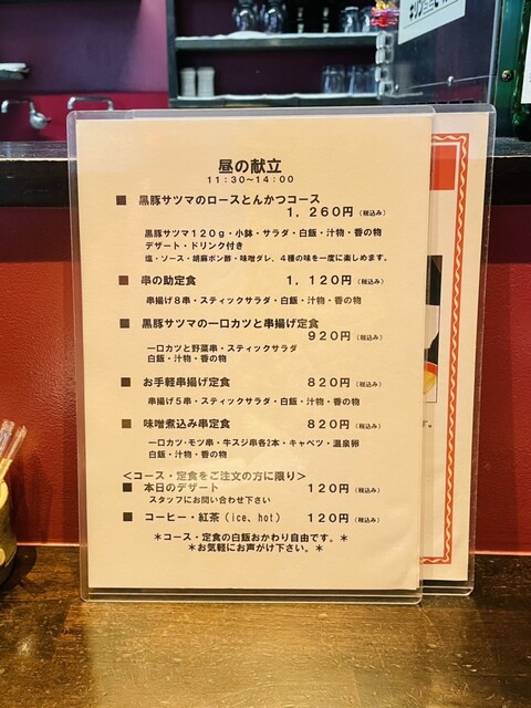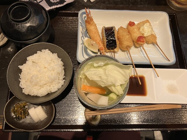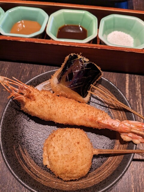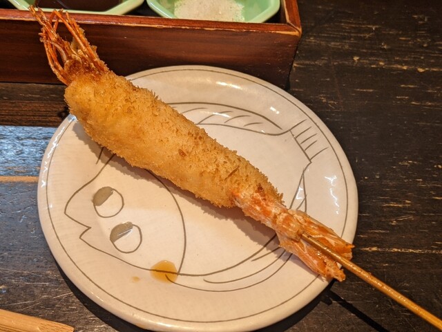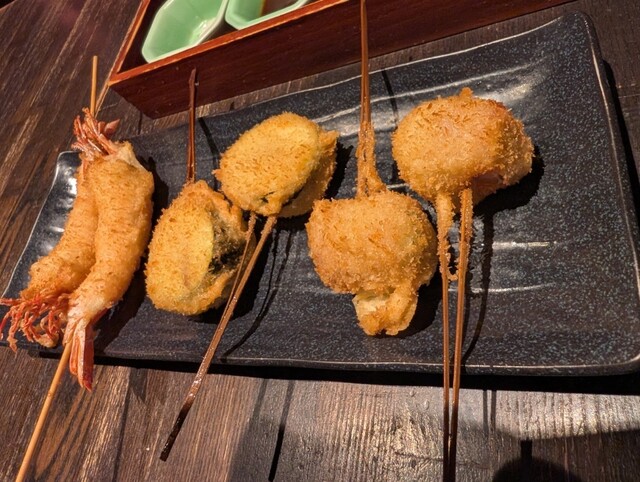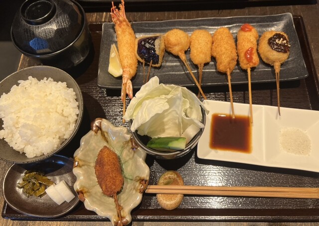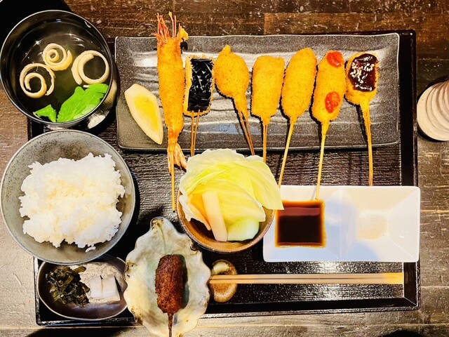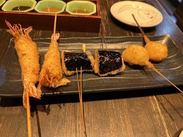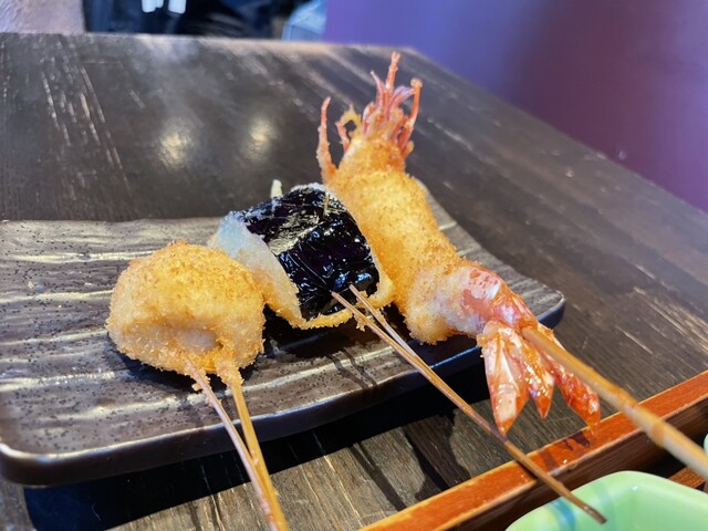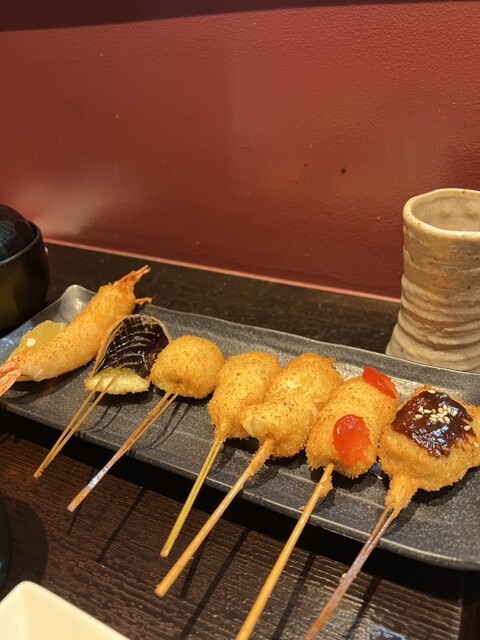 近くでよく食事をするのですが、こちらは初めて伺いました。お手頃価格で揚げたてサクサクの串カツがいただけて、満足です。サービスもテキパキされていて気持ち良いです。お一人様にも利用しやすいカウンターもあり...