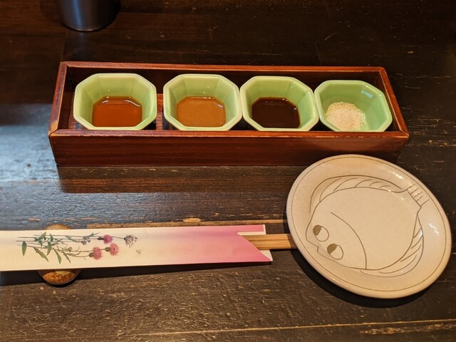 甘辛味噌、梅肉、ソース、塩と食べ...