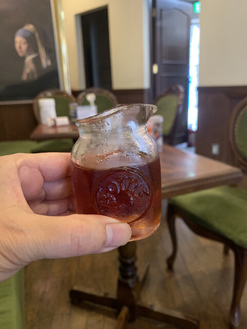 アイスコーヒーと共にピッチャーに入ったフレッシュ(ミルク)とガラ...