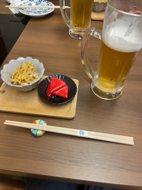 駅から歩いてすぐ目の前建物のテナント一画にある居酒屋さん。平日の遅い時間にもかかわらずほぼ満席に近いほどお客さんがたくさんいました。