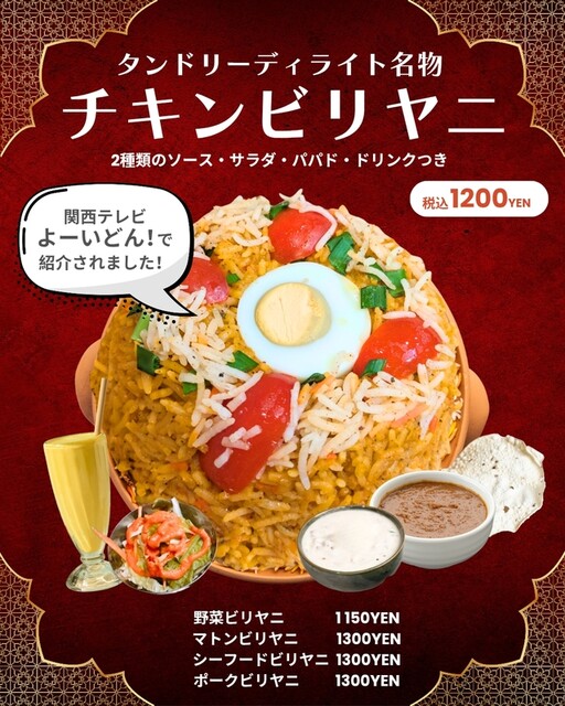 関西テレビ『よ〜いドン!』でも紹介された本格ビリヤニ(インド風炊き込みご飯)が自慢です!