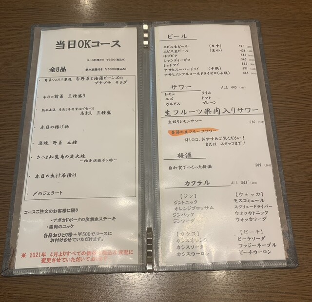 当日OKコースってのがあったので、それを2人前。以外は単品注文するスタイル!