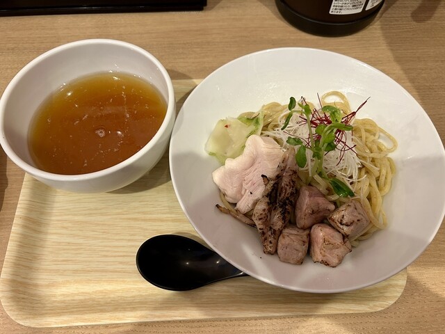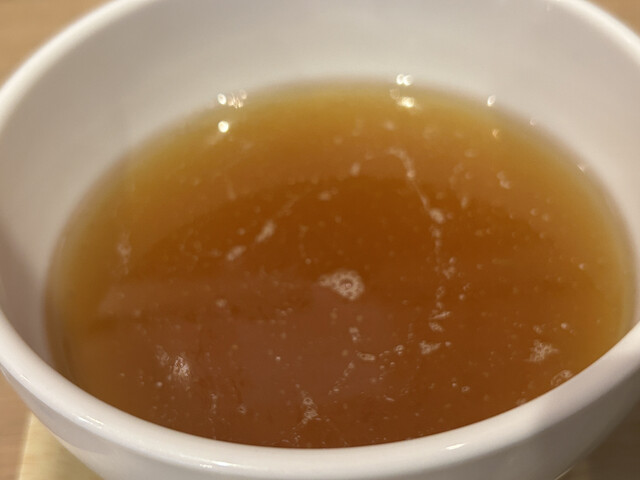 干し貝柱と干し海老の塩ダレが効いたスープは上品で奥深い味わい。ゆず粉での味変も楽しめ、最後まで飲み干してしま...