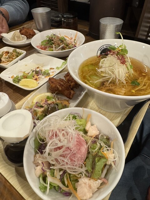 伊丹にある「メンヤ コトホギ」さんへ。 金曜19時ごろの訪問でしたが、外観はラーメン店らしからぬおしゃれな雰囲気で、店内も広くテーブル席が多め。お子様連れでも利用しやすそうでした... 詳細を見る