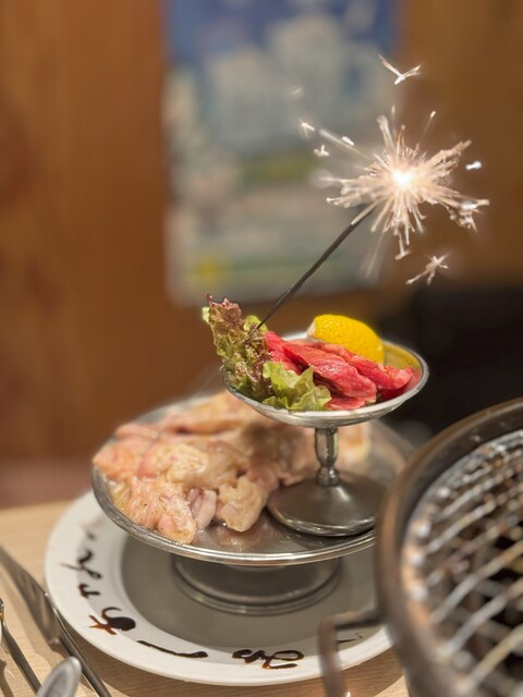 【誕生日・記念日に】花火付特製ホルモン肉ケーキ or メッセージ付特製プレートを無料プレゼント♪