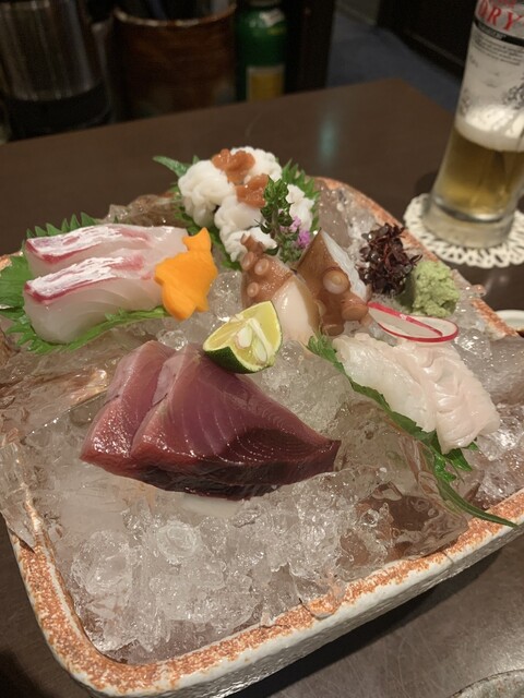 JR明石駅の南側、2号線沿いにある居酒屋。魚ん棚商店街の一本北側の大きな道沿いですね。明石の市場に近いのでとにかく刺身が新鮮です。もちろん生だけでなく、焼きや煮込み、揚げ物などいろんな調理法で魚が楽し...