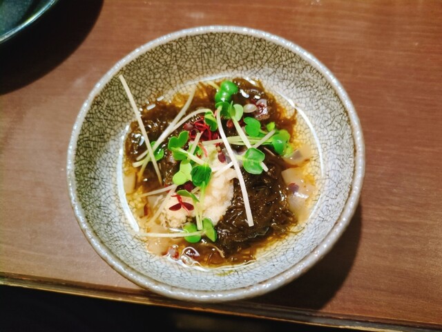 初めてお伺いしたお店です。お店に入ると2階に案内されましたが、しばらくすると満席の様子で人気店のようです。アラカルトで海鮮系を中心に注文しましたが、どの料理も美味しくいただけました。関西らしく、ハモの...