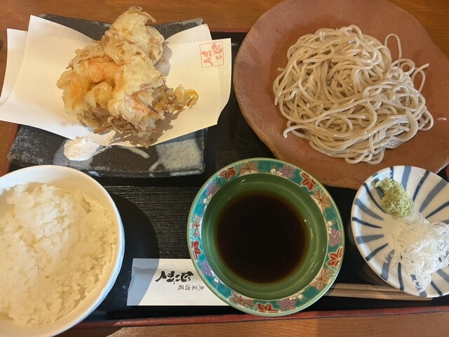 今回いただいたのは とり天定食(ざるそば+ご飯付き)。