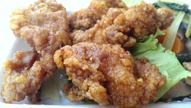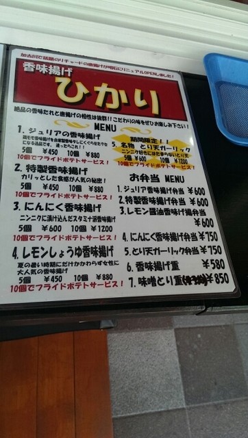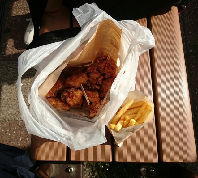 アツアツの揚げたて唐揚げを作ってくれます。特製香味揚げやにんにく香味揚げなどありますがせっかくなので今回は人気ナンバーワンのジュリアの香味揚げなるものをいただきました。出来立ての唐揚げを特製のタレにくぐらせて袋に入れてくれ...