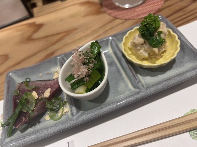 “美味しいは当たり前”を念頭に置き、もっと美味しいもので楽しく喜んでもらえるように日々仕事を致します。“お造里”は明石の昼網、淡路、瀬戸内を中心に。粋な肴や近江鴨などの肉料理、季節の食材を使った多彩な料理が揃います。全国47都道府県から選抜した日本酒と共に楽しんでください。〆には山形県産つや姫で握る”おむすび”が最高!明石鯛と鴨のラーメンも◎