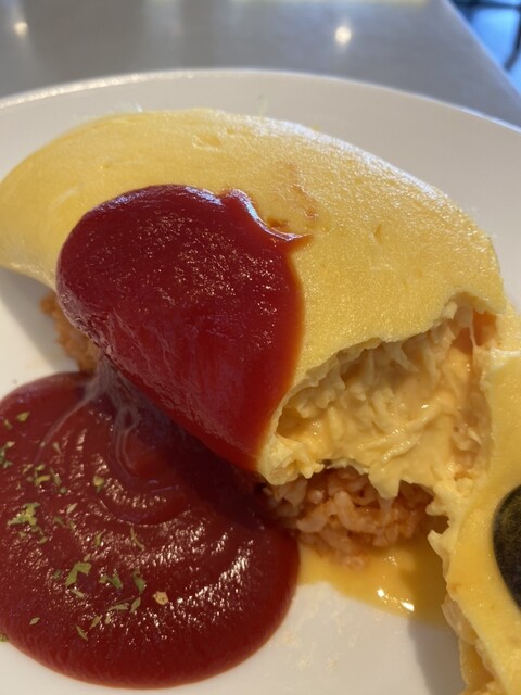 オムライスの卵はたっぷりつかって