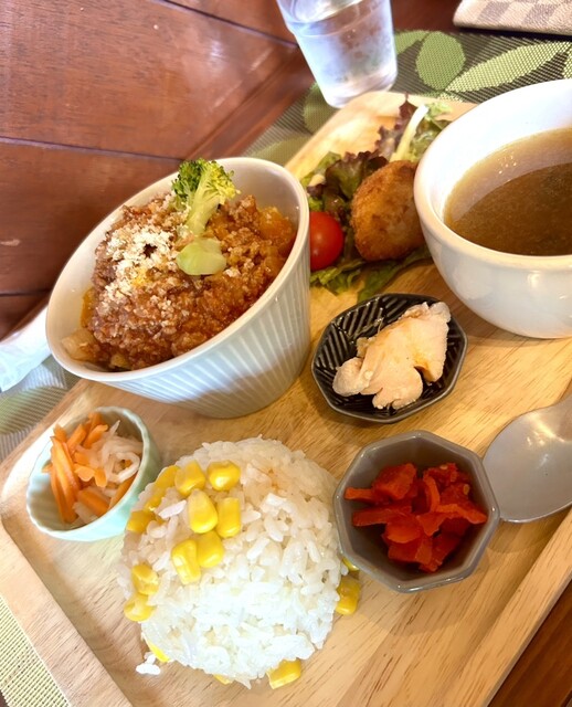前回美味しかったので、また来ちゃいました★ 野菜たっぷり使われていて、 家庭料理に+αされた感じが、 女子が好きだと思います(*´꒳`*)♡ 日替わりランチにしました!! この日はラザニア風でした!! ●とうもろこしごはん&福神漬け とうもろこしの甘みでごはんが甘くって美味しいです... 詳細を見る