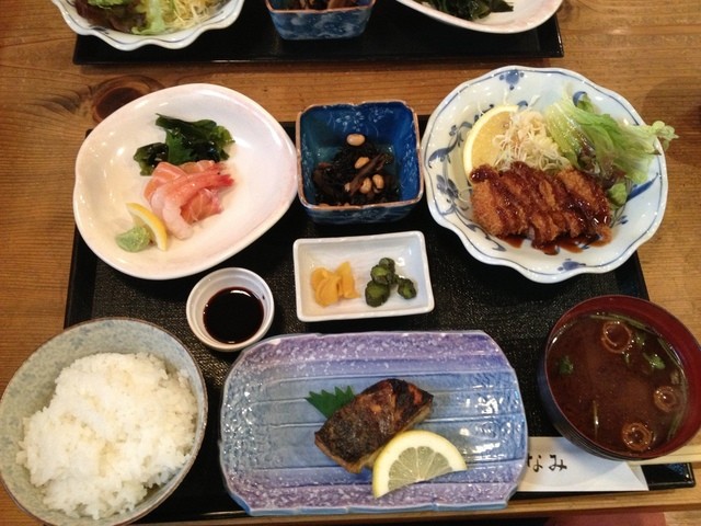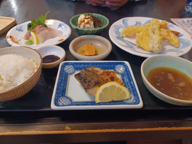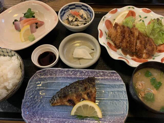 お昼時にふらっと立ち寄ったお店で インスピレーションのみで決めたのが当たり!おまかせ定食にしましたが、サバの塩焼き、刺身、チキンカツと小鉢ととても豪華! 酒のアテにおいしそうな... 詳細を見る