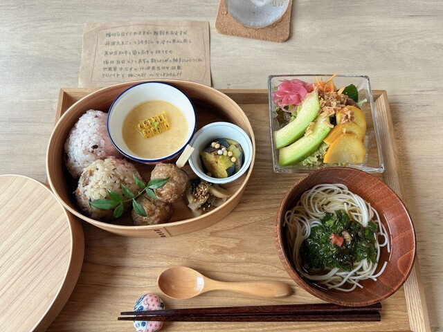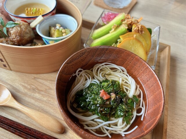 おばあちゃんの家に遊びにきたかのような雰囲気で、田舎の景色とともにおしゃれなわっぱに入ったランチを楽しみました♩ 汁物はそうめんで、夏を味わえました。 おいしかったです!! ... 詳細を見る